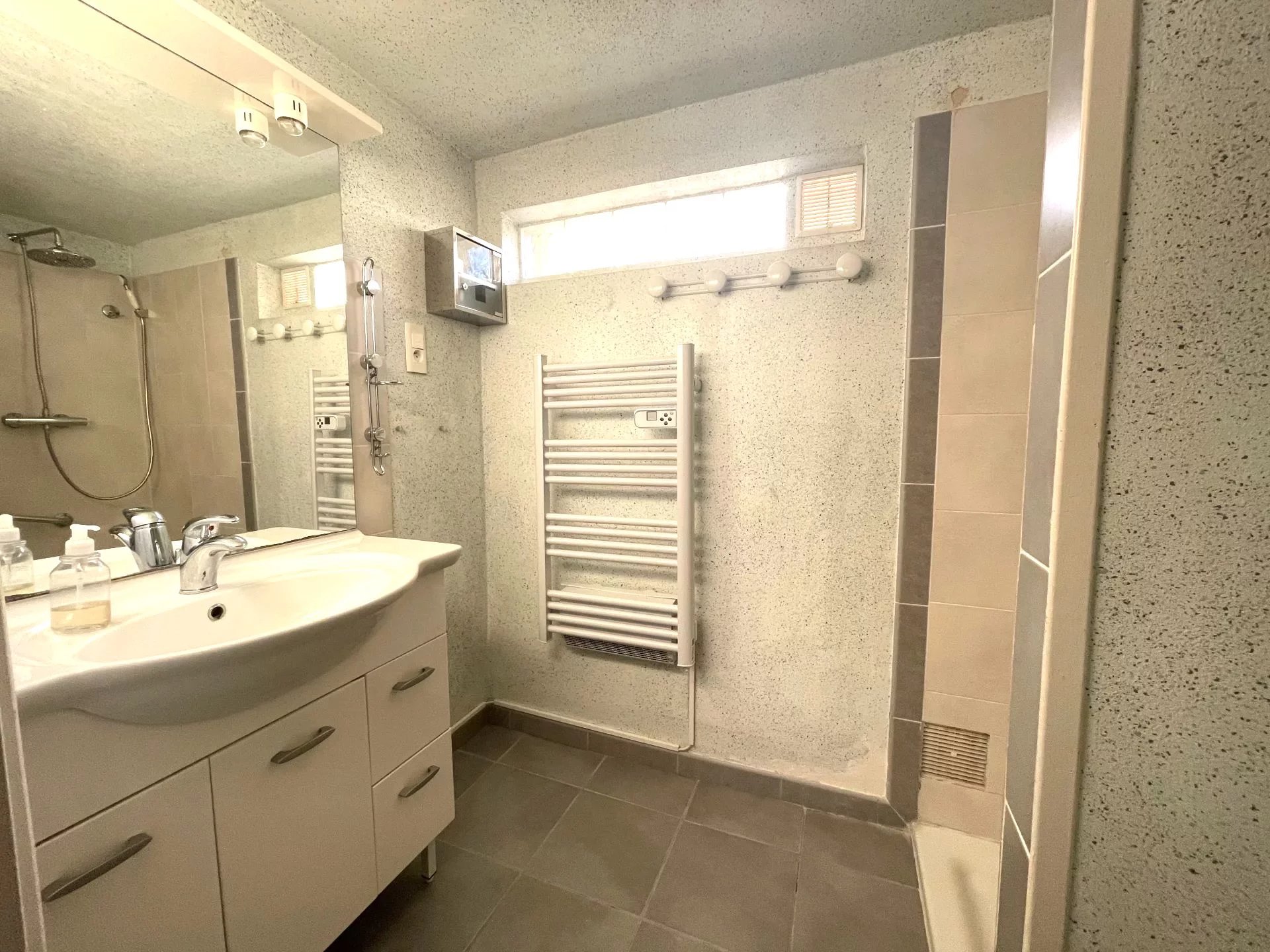 Vous disposez, en rdc, d'une entrée, d'un séjour, d'une cuisine, d'une chambre avec SDE, d'une buanderie et un WC. A l'étage, 2 grandes chambres avec double exposition, une SDE et un WC.